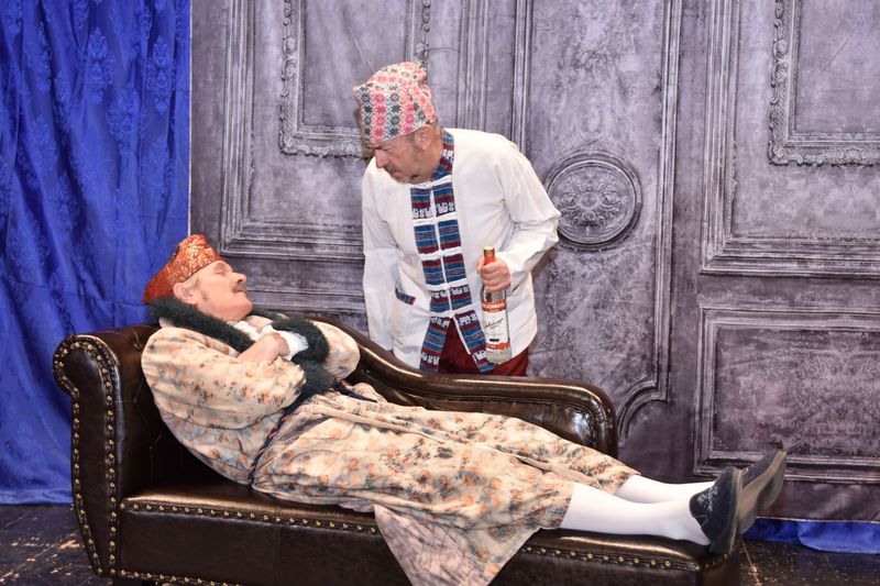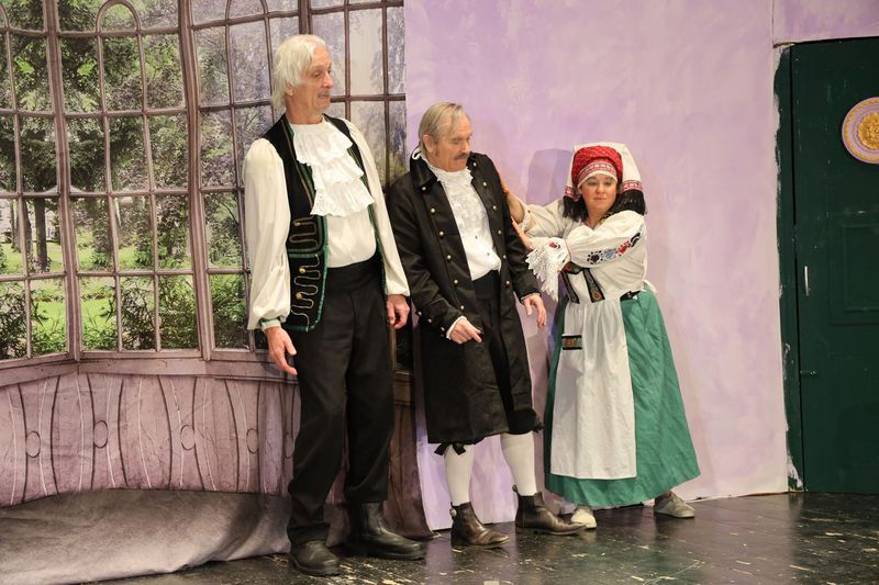 überzeugen, dass es höchste Zeit sei, auf Brautschau zu gehen. Sogleich gerät er in die Fänge der umtriebigen Heiratsvermittlerin Fjokla, die sich schon geraume Zeit erfolglos