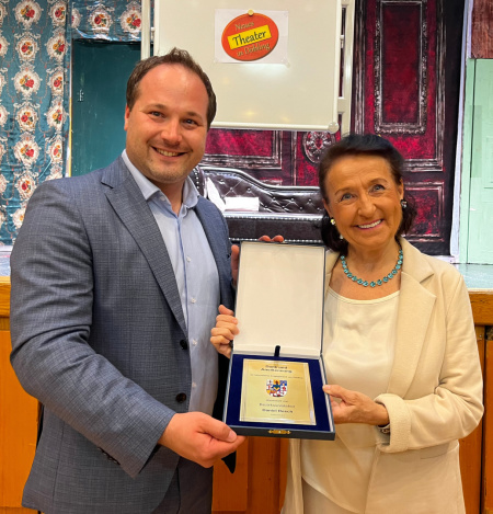 Am 3.10.2023 ehrte der BV Daniel Resch Heidelinde Twaroch für die Führung ihres erfolgreichen Neuen Theaters in Döbling!