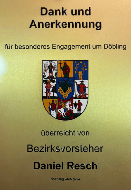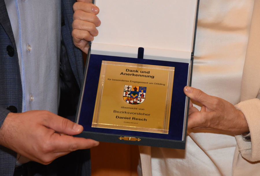 Dank und Anerkennung an Heidelinde Twaroch, überreicht von Bezirksvorsteher Daniel Resch!
